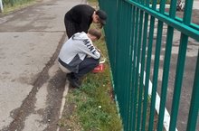 Обучающиеся трудовой бригады помогают в оформлении школы к новому учебному году