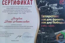 Поздравляем учителя истории Якубюк Дениса Анатольевича участника конкурса методических разработок среди педагогических работников образовательных учреждений Республики Татарстан в книге "Татарстан всё для фронта всё для победы 1941-1945"