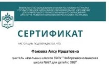 Учителя начальных классов ГБОУ "Набережночелнинская школа №67" приняли участие в межрегиональном конкурсе авторских методических идей и приемов (лайфхаков) в сфере образования, воспитания и развития детей "Мои педагогические идеи и лайфхаки", организованным ГАО УДПО "Институт развития образования РТ"