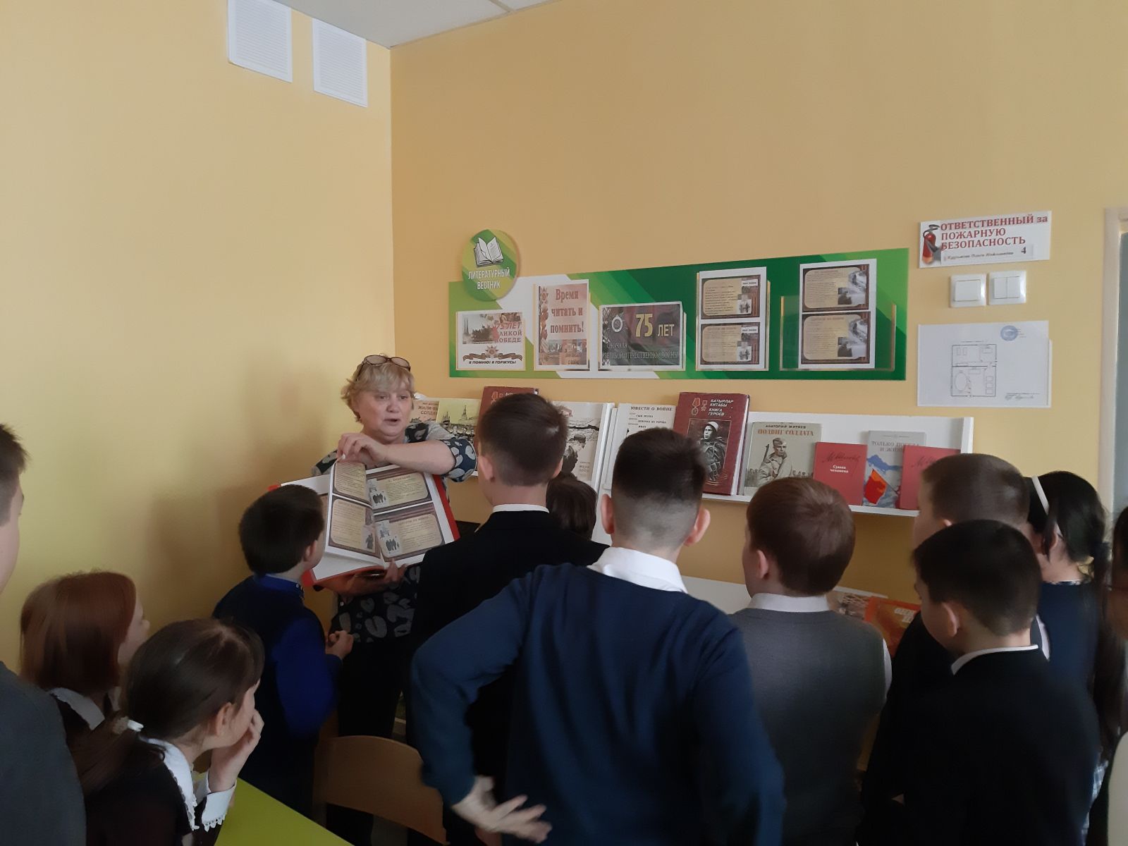 Библиотекарь рассказала о произведении С.Баруздина «Шел по улице солдат». Это детский рассказ о необыкновенном человеке, который тысячу раз сражался за Родину и побеждал. Он солдат, он герой. Он множество раз погибал, но не погиб. Это рассказ о дедах и прадедах, воевавших в годы Отечественной войны. Они все были настоящими героями. |