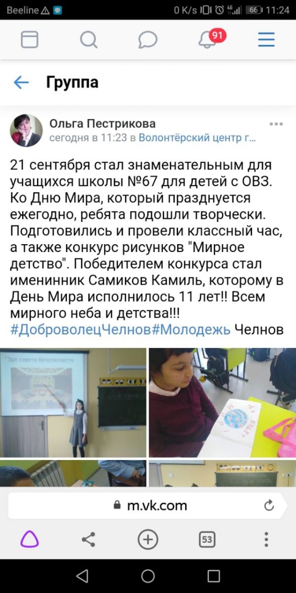 Опубликовано: 21.09.20211 сентября стал знаменательным днём для учащихся школы № 67 для детей с ОВЗ ко Дню Мира который празднуется ежегодно, ребята подошли творчески подготовили и провели классный час, а также конкурс рисунков "Мирное детство". Победителем конкурса стал именинник со которому в День Мира исполнилось 11 лет. Всем мирного неба и детства.