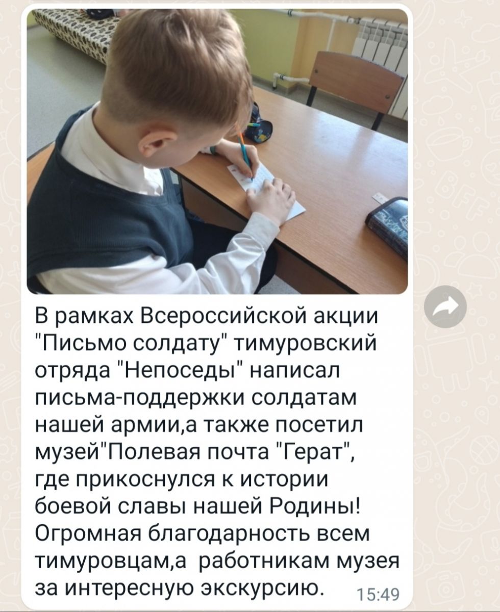 В рамках Всероссийской акции "Письмо солдату" тимуровский отряд "Непоседы" написал письмо солдату.
