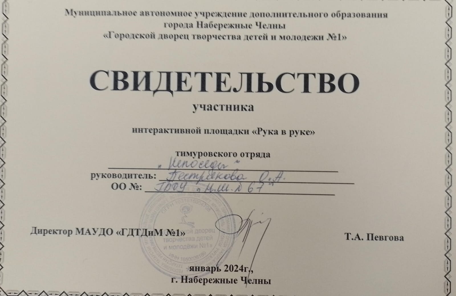 Опубликовано: 05.01.20245 января тимуровцы отряда, школы № 67, "Непоседы " приняли активные участие на городской интерактивной площадке "Рука в руке ". Данная акция была приурочена "ГОДУ СЕМЬИ 2024".