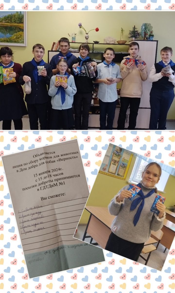 Опубликовано: 15.01.2024имуровский отряд "Непоседы" Набережночелнинской школы №67 принимает участие в городской акции по сбору кормов для животных в Дом добра для собак "Верность". #ТимуровцыНабережныхЧелнов#