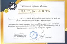 Родительское сообщество школы 68 награждено благодарственным письмом за активную работу со службой Государственной инспекции безопасности дорожного движения по г. Набережные Челны по пропаганде безопасного поведения детей на дорогах города.