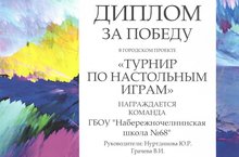 Сборная команда школы приняла участие в "Турнире по настольноым играм" который прошел в МАУК "ДК "КАМАЗ" и награждена дипломом за победу.