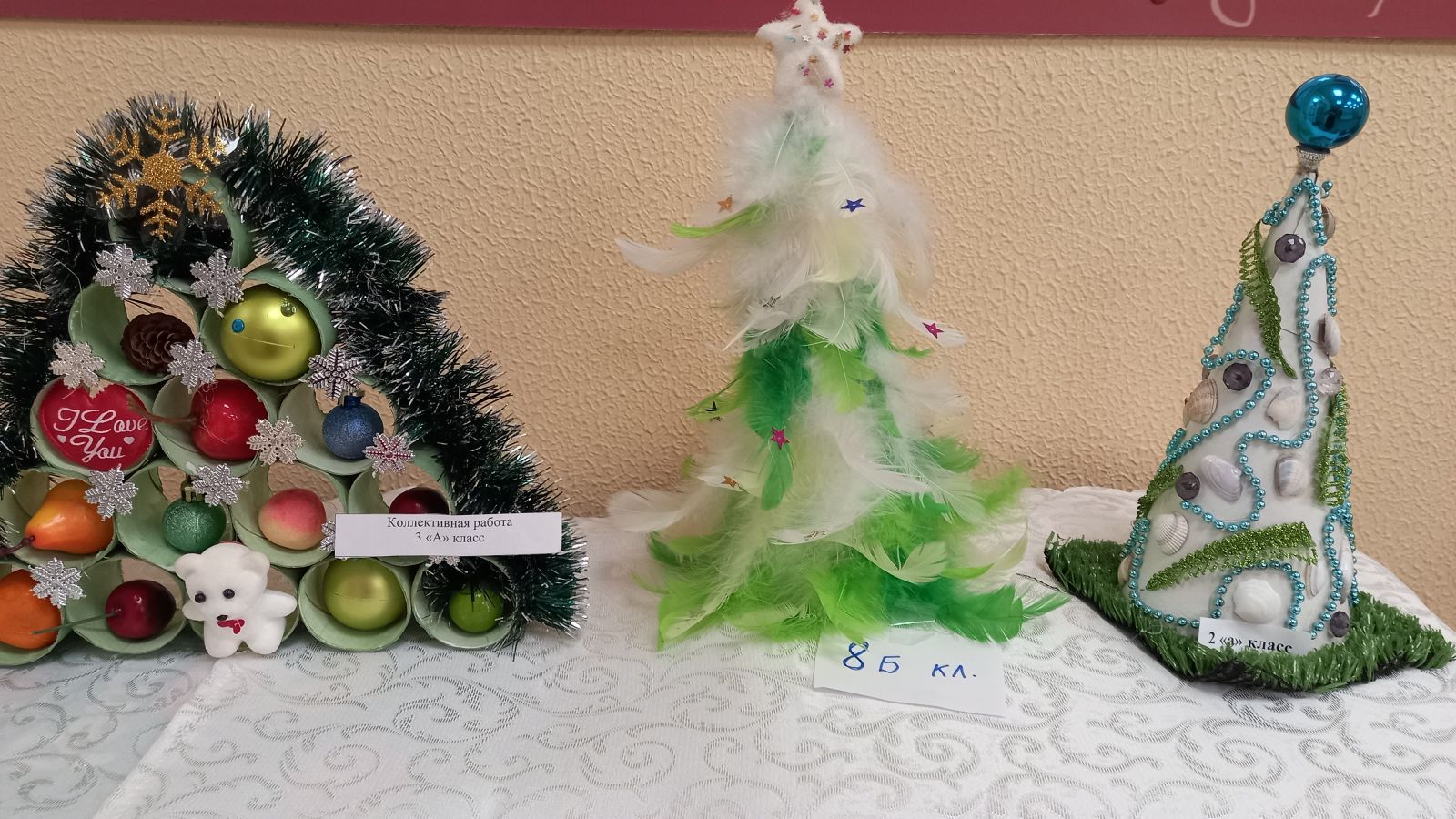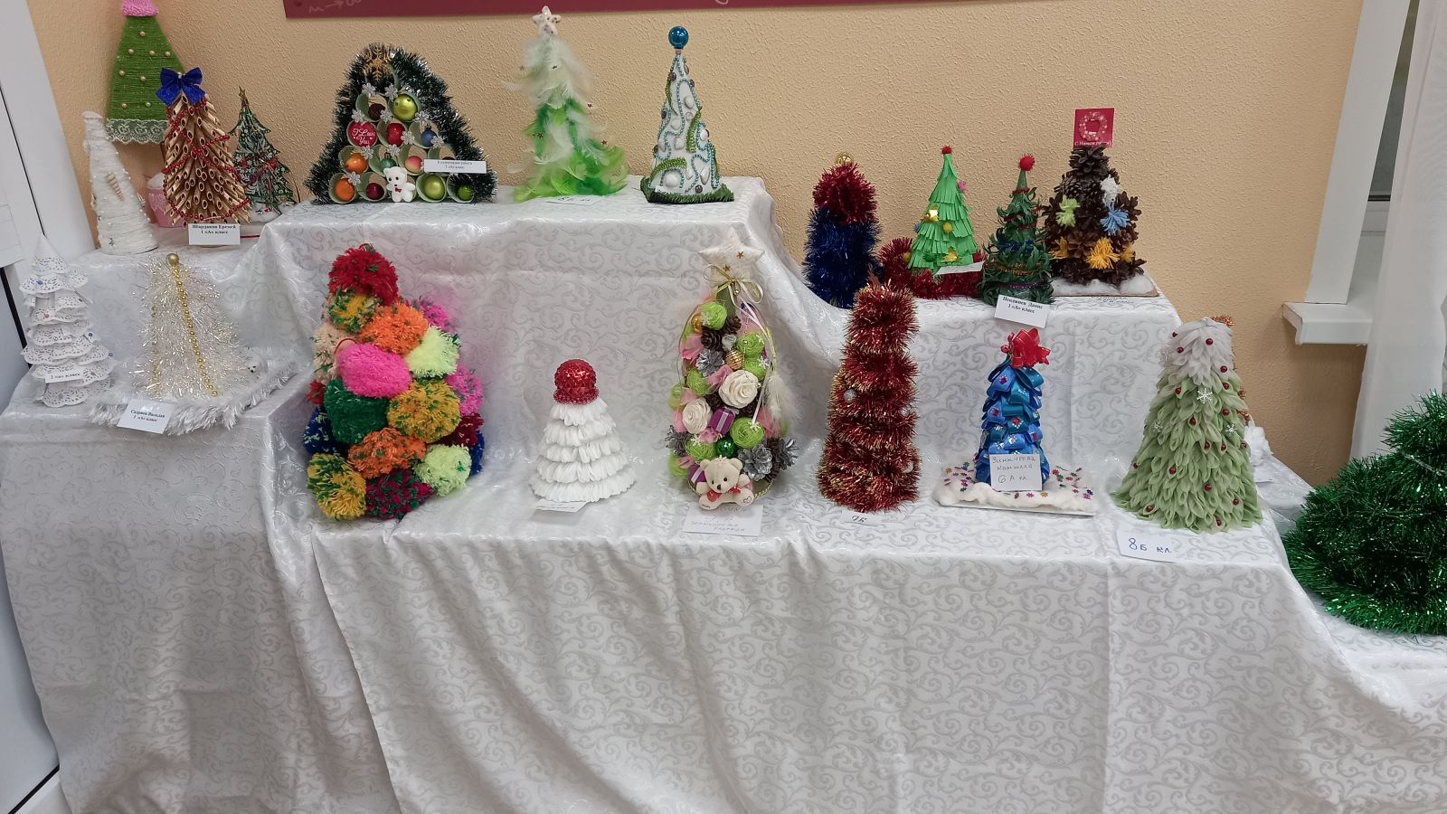 В рамках экологической операции "Ёлочка", в школе проходит конкурс ёлочек, сделанных из подручных средств. Принимают участие учащиеся 1-9 классов. При изготовлении таких ёлочек ребята используют: картон, макароны. пластиковые ложки, мишуру, перья и многое другое. И этим доказывают, что на Новый год дом можно украсить не только настоящей ёлкой, а еще и ёлкой, сделанной своими руками.
