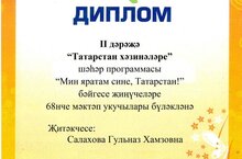 Каманда нашей школы награждена дипломои II степени за 2 место в конкурсе "Мин яратам сине, Татарстан!" в рамках городской программы "Татарстан хәзинәләре".