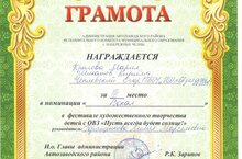 Учащиеся нашей школы награждены дипломом 3 степени за 3 место в фестивале "Пусть всегда будет солнце" в номинации "Театральное мастерство"