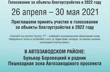 В целях вовлечения граждан к реализации федерального проекта «Формирование комфортной городской среды» Минстроем России совместно с АНО «Диалог Регионы» принято решение о проведении голосования по отбору общественных пространств, планируемых к благоустройству в 2022 году на единой федеральной платформе, которое состоится с 26 апреля по 30 мая 2021 года.