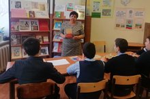 Сегодня в библиотеке школы прошел библиотечный урок "Песни мои", посвященный дню рождения М.Джалиля.