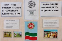 В школьной библиотеке оформлен стенд "Мой родной верный друг-родной язык", посвященный Году родных языков и народного единства