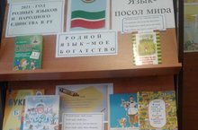 В школьной библиотеке офрмлена книжная выставка "Мой родной верный друг-родной язык", посвященный Году родных языков.