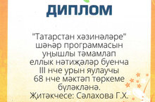 Сборная команда школы награждена дипломом за 3 место по результатам участия в городской программе "Татарстан хэзинэлэре" . Педагог: Салахова Г.Х.