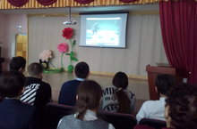В школе организовн "Перерыв на кино", где учащиеся 7-9 классов на 2,5 перемене смотрят фильмы о ВОВ.