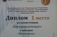 Ученица школы Гафиятуллина Л. награждена дипломом за 1 место в Республиканском этапе V Национального Чемпионата по профессиональному мастерству "Абилимпикс", который прошел в г. Казань.