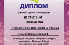 Сегодня в ГБС(К)ОУ НС(К)ОШ № 68 VIII вида г. Набережные Челны РТ прошло праздничное мероприятие "Я помню! Я горжусь!", посвященное 70 летию Победы в ВОВ.