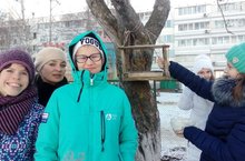 Ученики 9а класса под руководством учителя биологии Лобачевой А.Г. повесили кормушки для птиц.