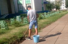 Во время летних каникул организовано трудоустройство учащихся старших классов на территории школы.