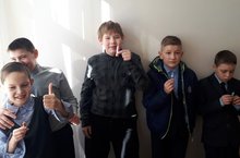 Тимуровский отряд "Дружба" решил поздравить весь женский коллектив с международными женским днём 8 марта! Своими руками сделали поздравительную открытку в формате 3D и в преддверии праздника встретили их у входа школы.