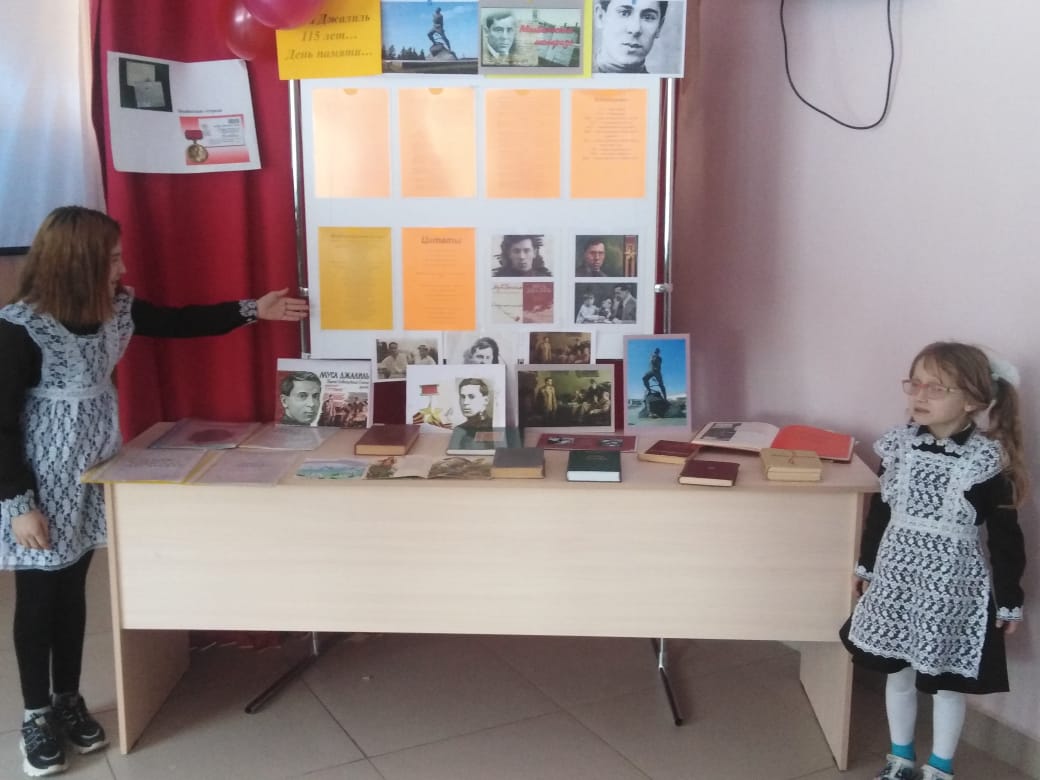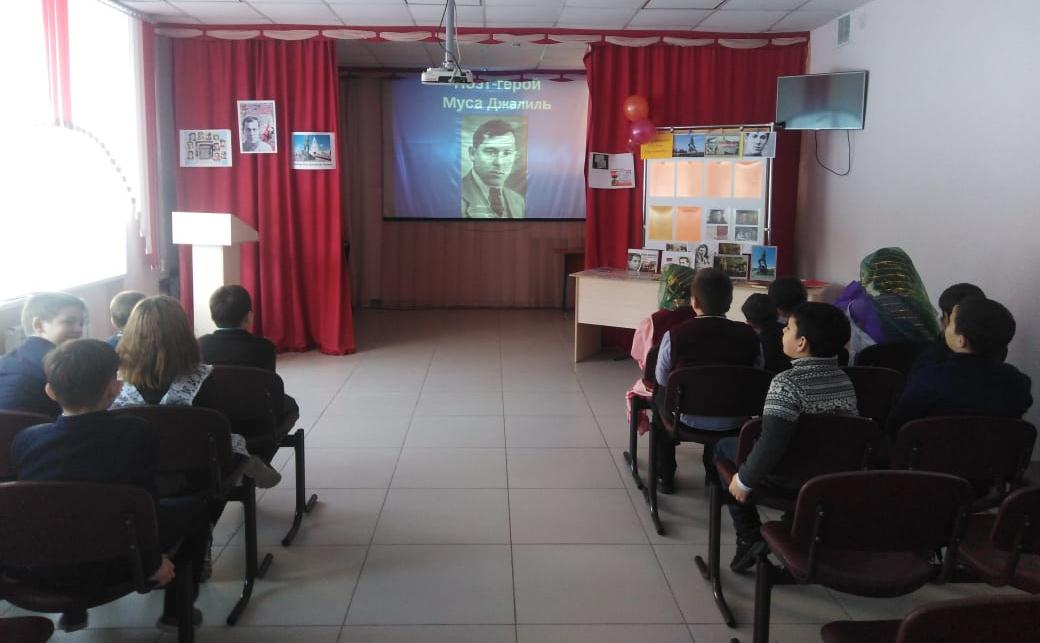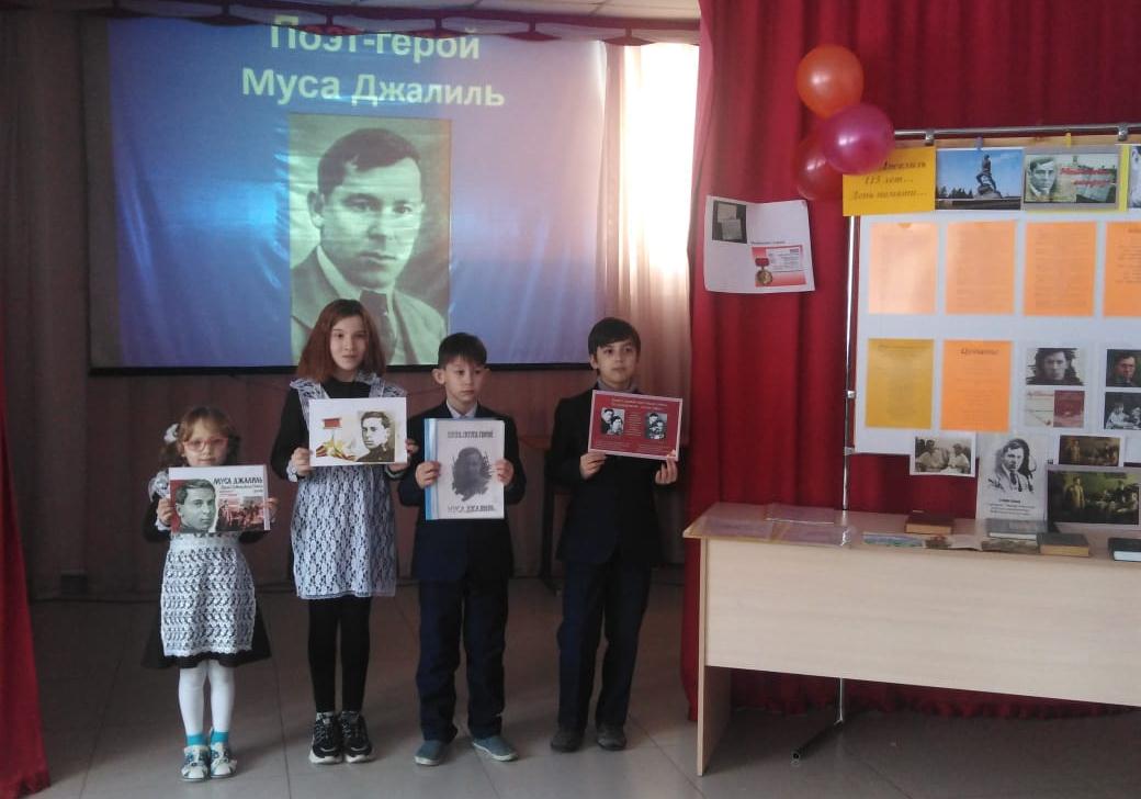2021 нче елның 17 нче февралендә 1 нче б һәм 4 нче а сыйныфы укучылары белән Галимуллина Фәнүзә Әхтәм кызы, Гайнетдинова Лилия Васил кызы җитәкчелегендә герой - шагыйрь Муса Җәлилнең 115 еллыгына багышланган сыйныфтан тыш чара уткәрелде. Шагыйрьнең шигырьләре укытучылар һәм укучылар тарафыннан бик матур яңгырады. "Кызыл ромашка", "Бәхет" шигырьләре аеруча укучыларның күңелендә тирән хис калдырдылар. Ә шигырьләрнең, чараның бөтен тирәнлеген тоюда Бөек Ватан сугышына багышланган презентация ярдәм итте.