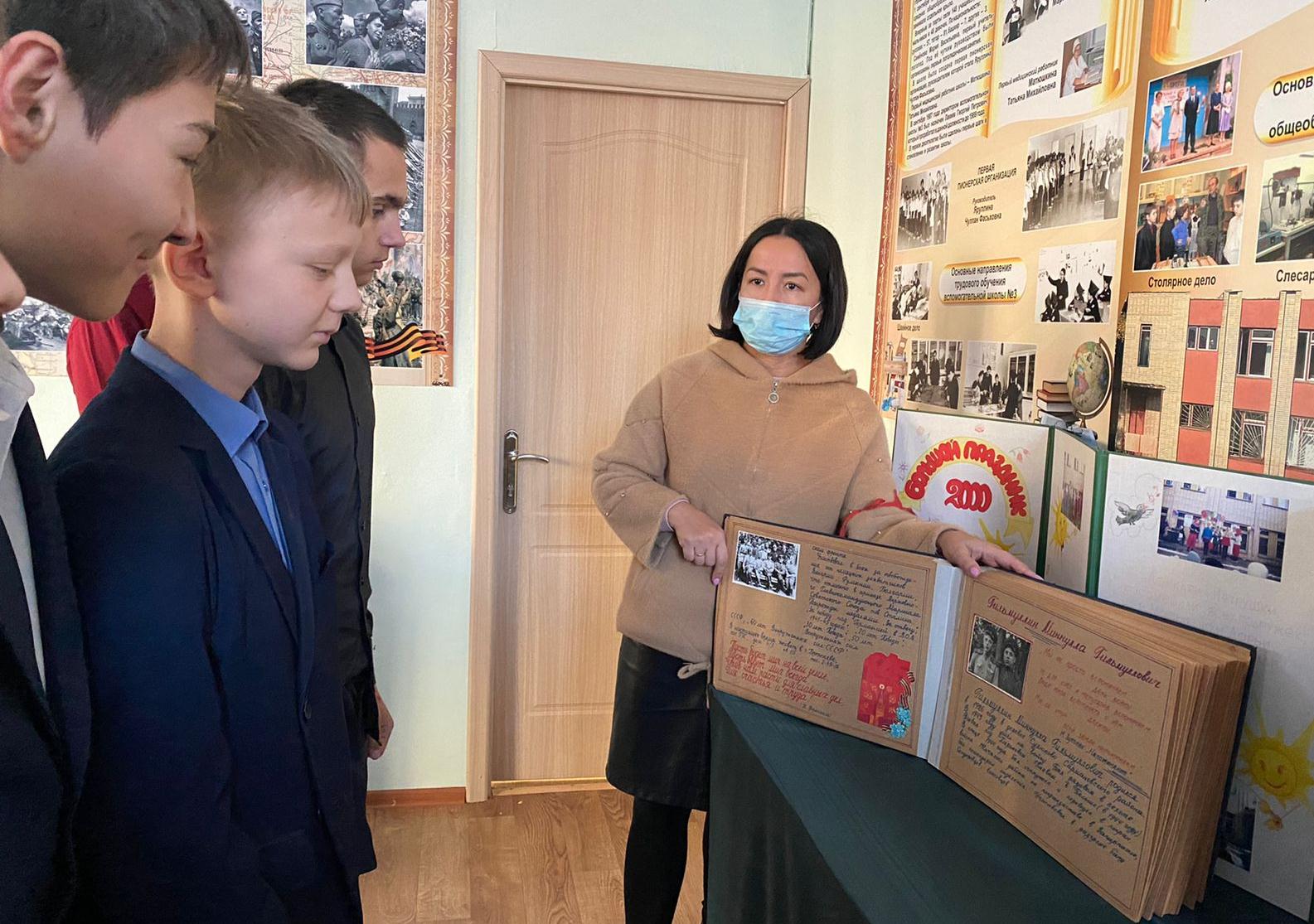 Опубликовано: 08.12.202108.12.2021 В школьном музее прошли уроки мужества. На уроках вспоминали героев земли Российской: А.Невского, Д.Донского, Г.К. Жукова и других славных сынов Отечества. Учитель истории Тимургалиева Д.А. рассказала учащимся о женщинах-героях ВОВ.