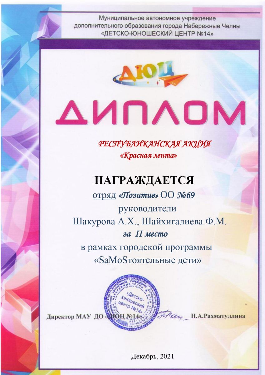 Опубликовано: 09.12.2021Отряд "Позитив" (руководители Шакурова А.Х. и Шайхигалиева Ф.М.) в рамках городской программы ДЮЦ №14 "SaМoSтоятельные дети" приняли участие в республиканской акции "Красная лента" и заняли 2 место.
