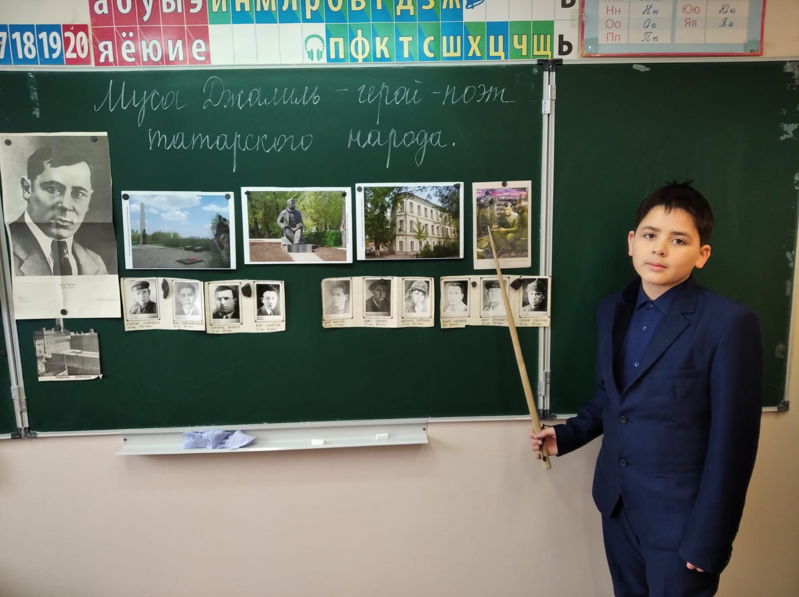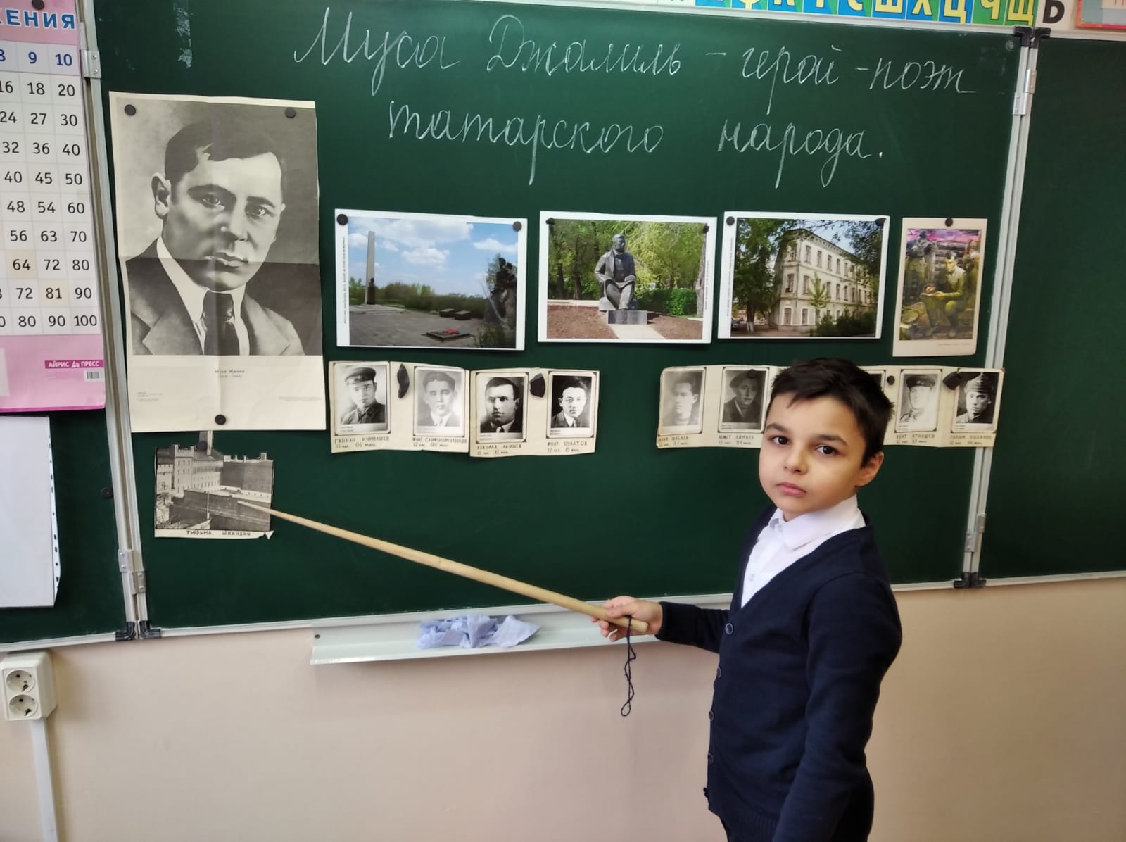 Опубликовано: 17.02.202217.02 для 4б класса классным руководителем Нигметзяновой Г.Р. был проведен классный час на тему "Муса Джалиль - герой поэт татарского народа". Ребята узнали о жизни поэта, о его подвигах в ВОВ. Ознакомились со стихами из "Моабитской тетради".