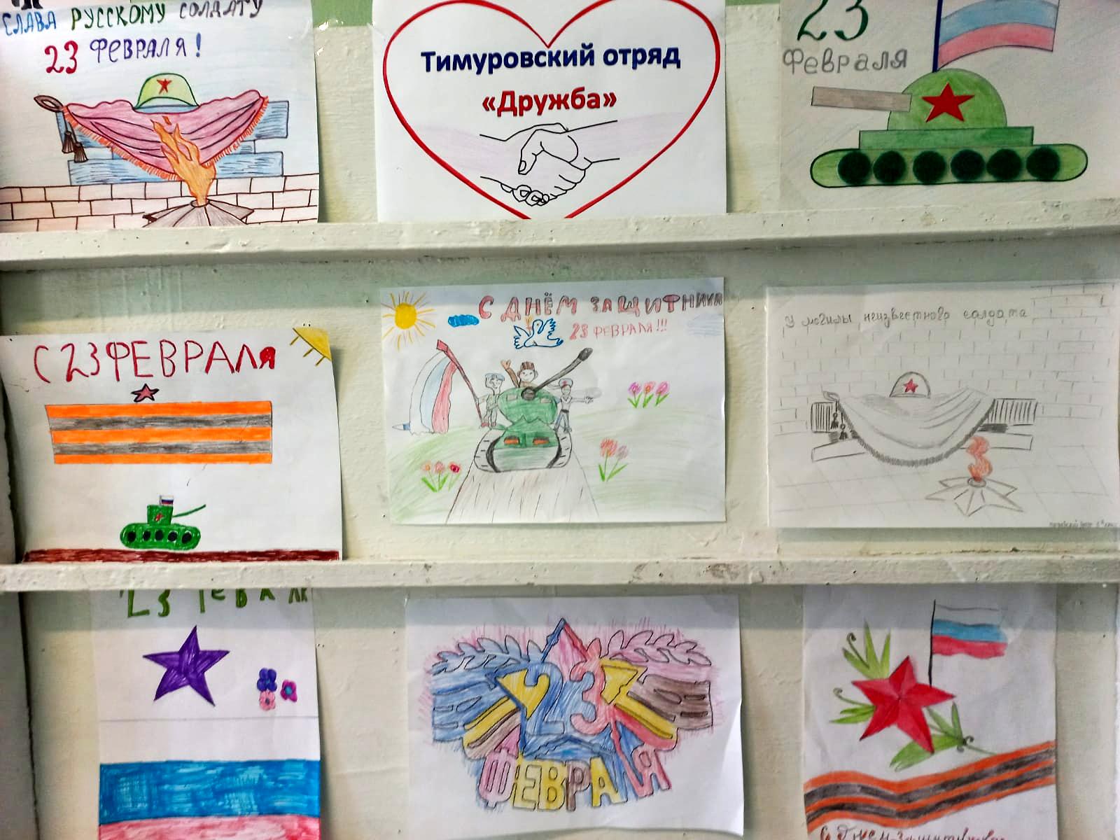 Опубликовано: 21.02.2022По программе месячника военно-патриотического воспитания, тимуровский отряд "Дружба" оформили школьный уголок согласно тематике "День героев Отечества". Тимуровцы с большим желанием и интересом отнеслись к конкурсу рисунков.