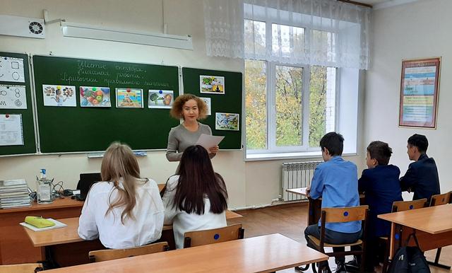 Опубликовано: 07.10.2022Согласно воспитательному плану мероприятий, а также работе, проводимой в рамках городской программы «Имею право» по воспитанию у обучающихся принципов здорового образа жизни, 06.10.2022г. в 8а классе ГБОУ «Набережночелнинская школа №69» педагогом Акбировой Г.Т. был проведён урок безопасности «Привычки правильного питания».