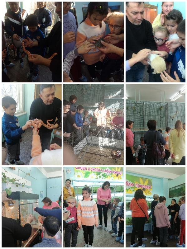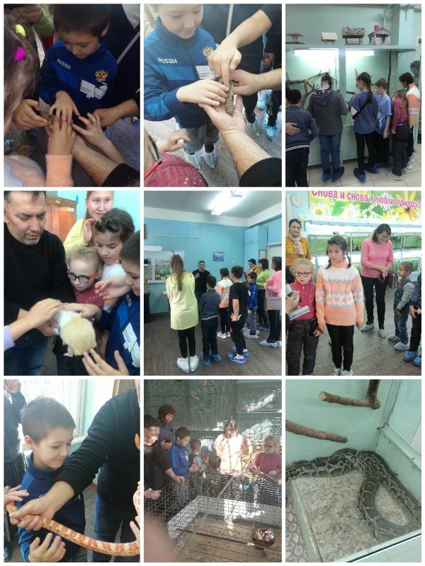 Опубликовано: 03.11.2022Согласно плану воспитательной работы на осенние каникулы 03 ноября 2022 года учащиеся 3а и 3 б классов под руководством педагогов Валиевой Р.Р., Галимуллиной Ф.А. посетили ДЭБЦ № 4, где для обучающихся была проведена экскурсия в уголок живой природы «Удивительное рядом». Ребята с интересом слушали экскурсовода, который рассказал о зверьках, рыбках, насекомых, обитающих в живом уголке. Дети имели возможность посмотреть под микроскопом строение инфузории - туфельки, потрогать морских черепах, свинку, пищуху, погладить ящерицу и змея.