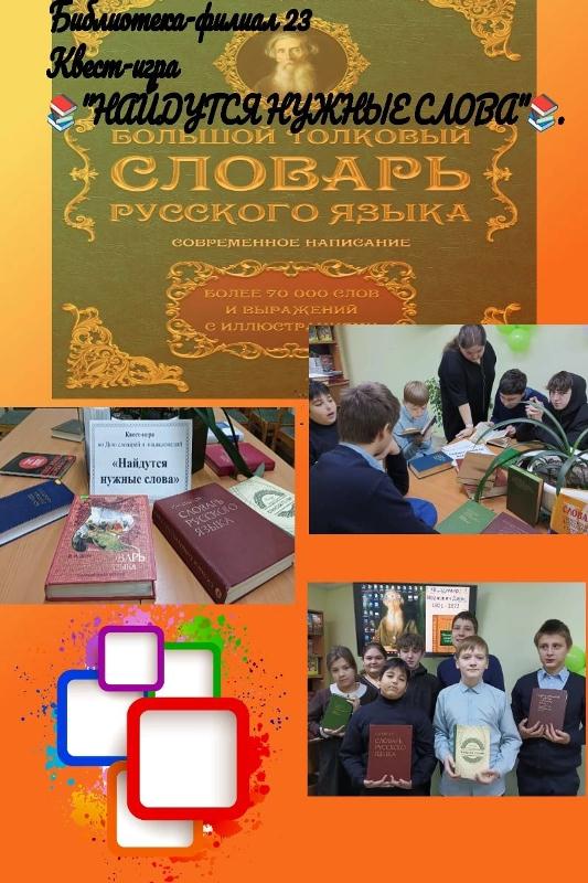 Опубликовано: 24.11.202222.11.22 ученики 7а класса посетили библиотеку №23, где для них была проведена Квест-игра ко Дню словарей и энциклопедий "Найдутся нужные слова".