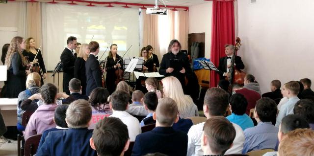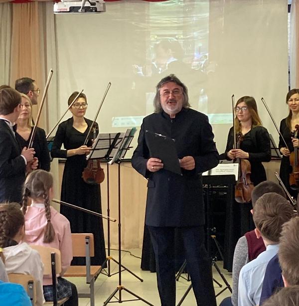 Опубликовано: 11.01.202311.01.2023г. воспитанникам и педагогам ГБОУ «Набережночелнинская школа №69» посчастливилось встретиться с уникальным Казанским камерным оркестром «La Primavera» под управлением директора - художественного руководителя и главного дирижера - заслуженного деятеля искусств РФ, народного артиста РТ, заслуженного деятеля искусств РТ, лауреата государственной премии РТ им Г.Тукая Рустема Юнусовича Абязова, который представил зрителям концерт под названием «От гавота до фокстрота».