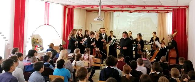 Присутствующих удивила вдохновленная игра музыкантов, живой завораживающий звук, талантливые исполнители, отличная режиссура концерта. Управление дирижера оркестром заслуживает высших похвал. Музыканты вкладывали в игру свою душу, заряжая позитивной энергией зрителей. Каждое музыкальное произведение сопровождалось видеорядом на большом экране. Для обучающихся самим дирижером была проведена музыкальная викторина. Особо активных детей награждали призами. Выступление оркестра оставило очень яркие впечатления и эмоции в душе каждого зрителя.