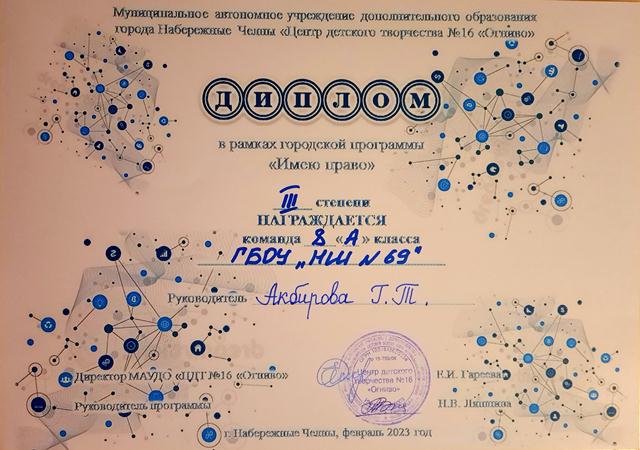 | Короткое название: | ГБОУ "Набережночелнинская школа №69" |