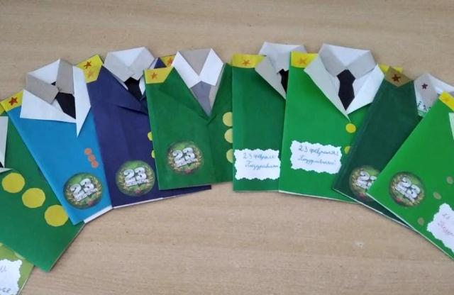 Учащиеся 4А и 4Б классов изготовили открытки для российских солдат, участвующих в специальной военной операции. Пусть для наших воинов эти открытки станут подарком к празднику и огромной поддержкой морального духа.