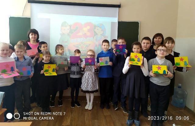 Опубликовано: 24.02.2023Учащиеся 3 а и 3 б классов под руководством педагогов Валиевой Р.Р. и Галимуллиной Ф.А. изготовили поделки ко Дню защитника Отечества и поздравили своих пап и дедушек с праздником 23 февраля.