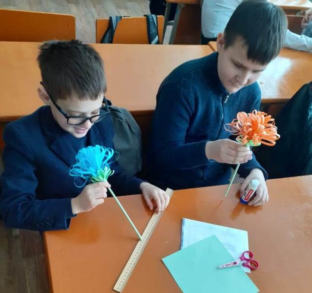 Опубликовано: 07.03.2023Учащиеся 6а класса под руководством классного руководителя Хамидуллиной Л.Р. изготовили подарки для мам и бабушек, провели чаепитие и поздравили девочек класса.