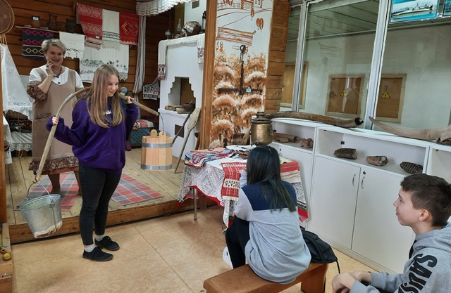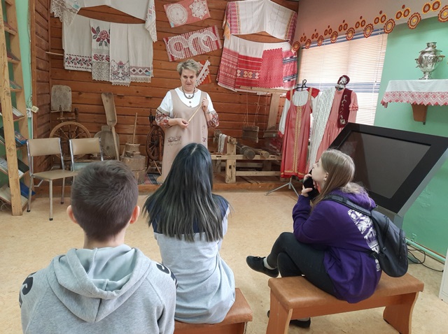 Опубликовано: 31.03.2023Согласно плану воспитательной работы с учащимися на весенние каникулы, 31.03.2023г. педагогом Акбировой Г.Т. для учеников 8а класса был организован выход в МАУДО «ГДТДиМ №1», где была проведена интерактивная экскурсия «История родного края» в этнографическом музее «Истоки». Экскурсовод Косякова Ольга Викторовна очень живо, интересно, доступно рассказала о национальных традициях и обычаях наших предков, ознакомила детей с предметами быта, утварью, позволила ученикам самим вжиться в образы сельских жителей и тем самым способствовала воспитанию уважения к труду. Ребят экскурсия очень впечатлила и оставила только положительные эмоции.