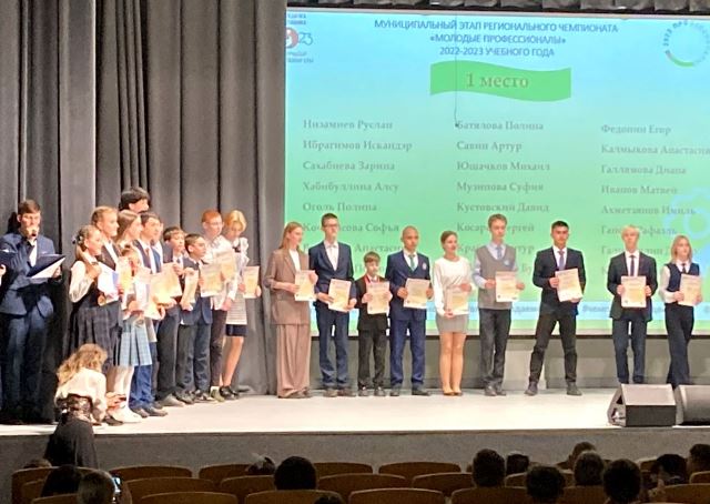 Опубликовано: 17.05.202317 мая 2023г. в гимназии №59 «Адымнар» прошли награждения школьников, занявших 1-3 места в Муниципальном этапе регионального Чемпионата по профессиональному мастерству «Профессионалы» Республики Татарстан 2023 года всех компетенции и возрастных групп.