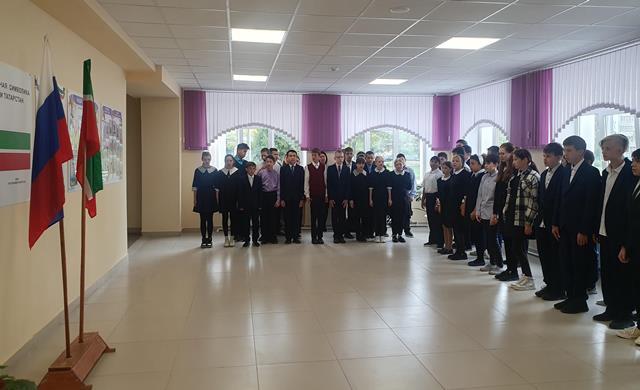 Опубликовано: 11.09.2023По традиции каждый понедельник новой недели мы начинаем с исполнения гимнов Российской Федерации и Республики Татарстан.