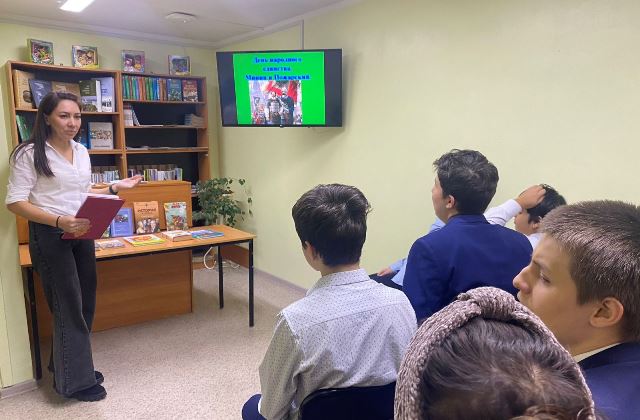 Опубликовано: 02.11.2023Согласно плану воспитательной работы с учащимися на осенние каникулы 02.11.2023г. для учеников 8а и 8б классов педагогами Тимургалиевой Д.А. и Пищевских Я.А. был организован выход в городскую библиотеку №23. Здесь для них провели исторический экскурс «Единство в нас» ко Дню народного единства.
