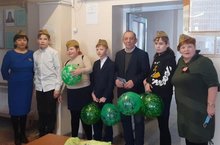 Отряд тимуровцев торжественно поздравили весь мужской коллектив с Днём Защитника Отечества. А также красочно оформили актовый зал для фотосссесии и праздника.