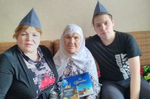 В рамках месячника патриотического воспитания тимуровский отряд "Дружба" посетил на дому ветерана тыла ВОВ Шайхутдинову Мяссару Саитовну 1930 года рождения.