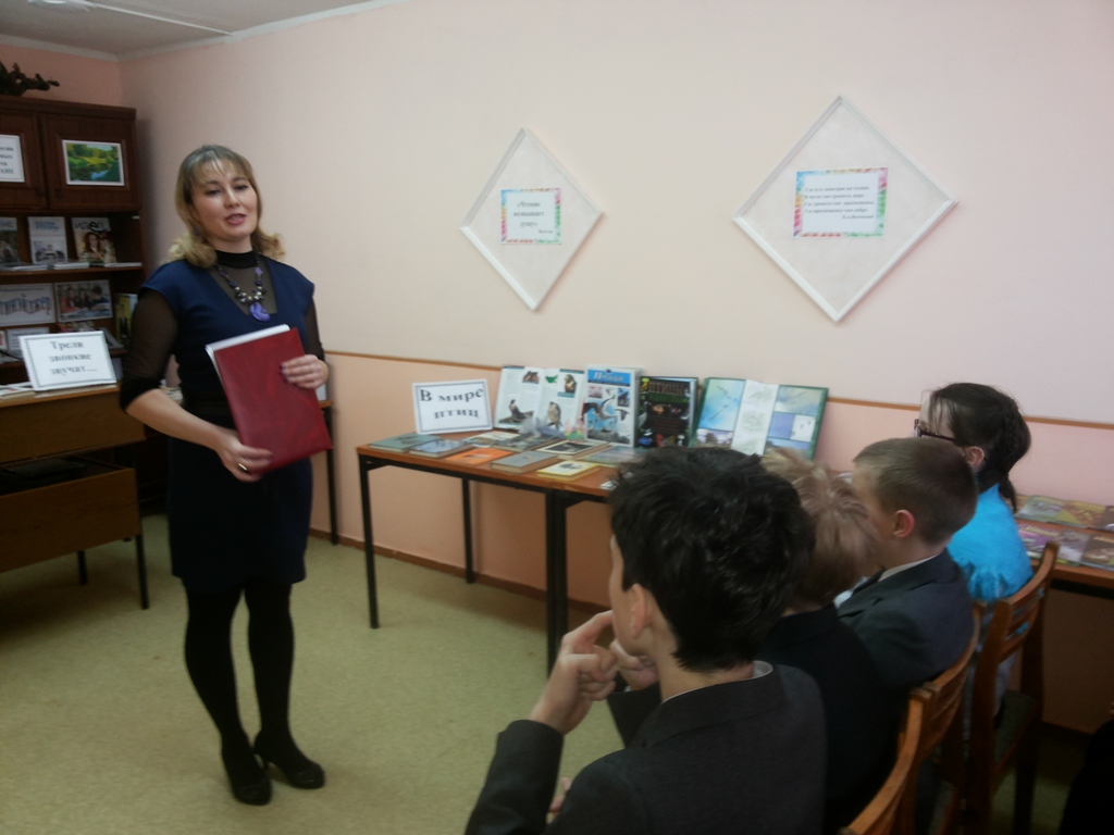 Опубликовано: 04.04.20174 апреля ученики 4 класса посетили городскую бибилиотеку №23. Мероприятие называлось "В мире птиц". Ребята разгадывали ребусы, игры, загадки.