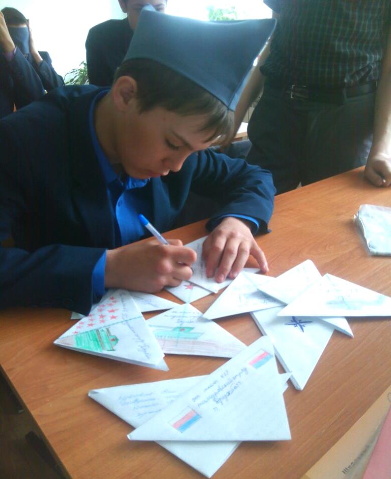Опубликовано: 27.04.2017Тимуровский отряд "Дружба" по акции "ВЕТЕРАН ЖИВЕТ РЯДОМ" сделали своими руками листовки в виде солдатских писем-треугольников с информацией о ветеранах ВОВ, а также их подвигах. В поле адрес получателя написано, "всем ныне живущим, чтобы помнили, гордились, хранили". Старшее поколение наши письма тронули до сердца, они нам рассказали немного о войне и кто, кого, как потерял.