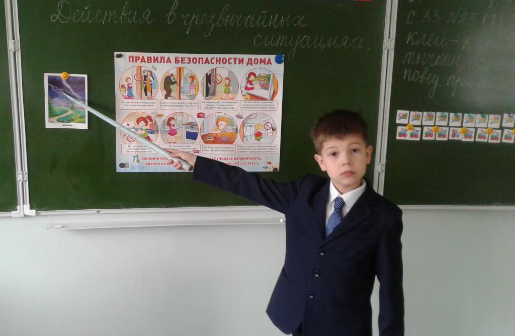 Опубликовано: 03.10.20173 октября 2017 года классным руководителем Абдрахмановой А.А. в 3а классе был проведен урок ОБЖ «Действия в чрезвычайных ситуациях». Ученикам была показана презентация и проведена беседа о правилах поведения в чрезвычайных ситуациях. Учитель напомнил детям телефоны экстренных служб.