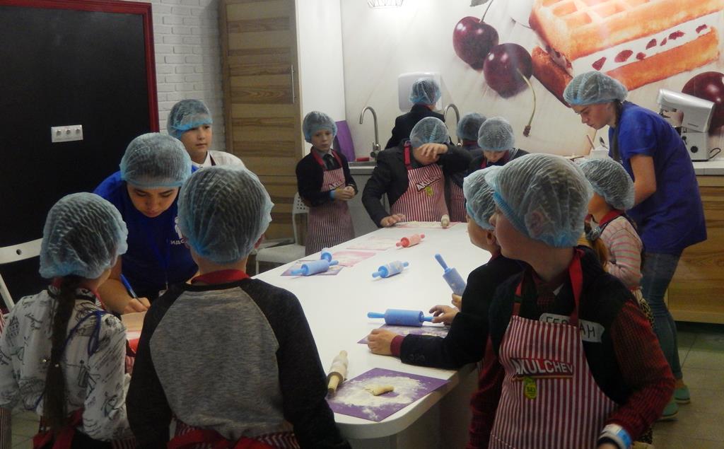 Особенно детям понравилась станция «Кондитерская». После теоретического занятия всем «пекарям» раздали нарукавники, одноразовые шапочки и фартуки. Каждый участник группы получил тесто и скалку. Дети пекли печенье, которые потом вкусно поели.