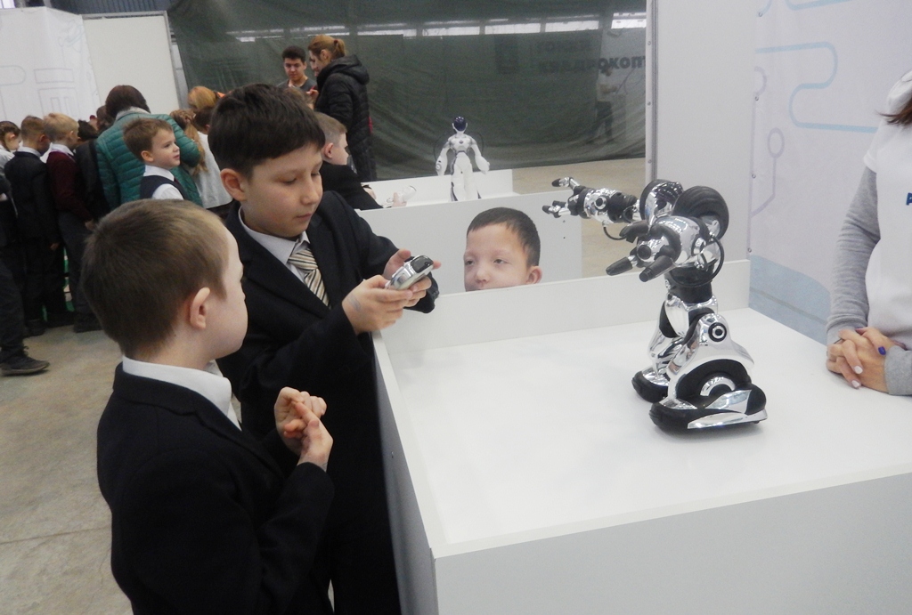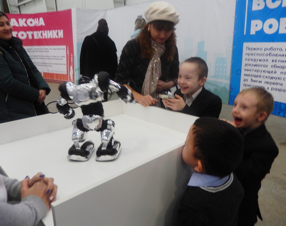 Экскурсовод в интересной и доступной форме рассказал о каждом роботе, его уникальных возможностях и применении в быту. Учащиеся могли потрогать, пообщаться, поиграть с роботами и даже поуправлять ими! Море удовольствия получили как дети, так и взрослые. Ведь среди роботов были и те, что знакомы всем по известным фильмам, а еще они все - живые.
