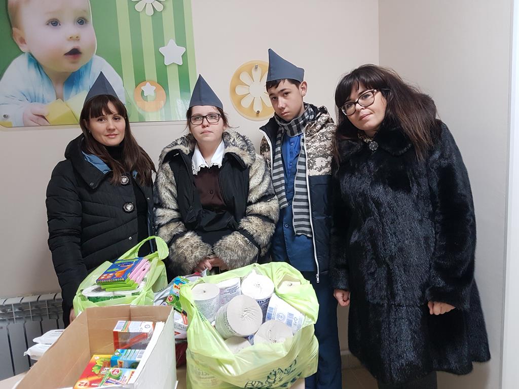 Опубликовано: 11.12.201711.12.2017г. в рамках городской акции «Дети - детям» тимуровцами был организован выход в Дом ребенка. Ранее в школе была организована «Ярмарка добра». В подготовке к ярмарке приняли активное участие все учащиеся школы с 1 по 9 класс, родители и педагоги. Средства, полученные по итогам ярмарки, были направлены на нужды детей, находящихся без попечения родителей. На сегодняшний день в Доме ребенка г. Набережные Челны находятся 35-40 детей в возрасте от 0 до 4 лет.
